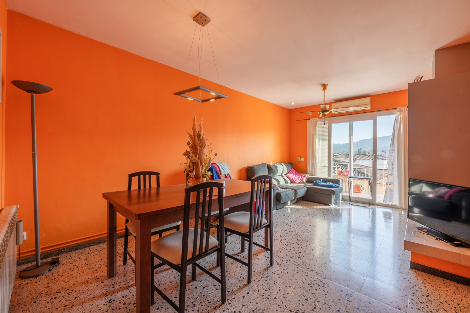 El pis disposa de 3 habitacions i 2 banys, un ampli saló-menjador amb llar de foc, cuina funcional, tancaments de doble vidre que milloren l’aïllament i calefacció de gas que garanteix confort durant tot l’any.
